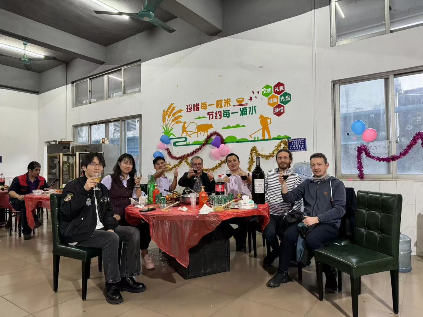 感謝?法國客戶對我們的認可,今天來驗收密煉機,并加入昶豐公司參加員工生日晚會